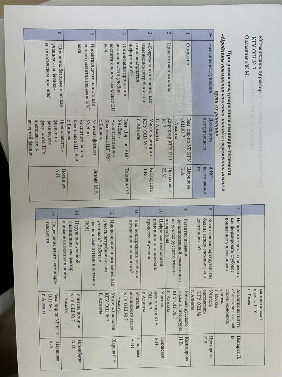 КГУ «Общеобразовательная школа №7» Управления образования города Алматы
