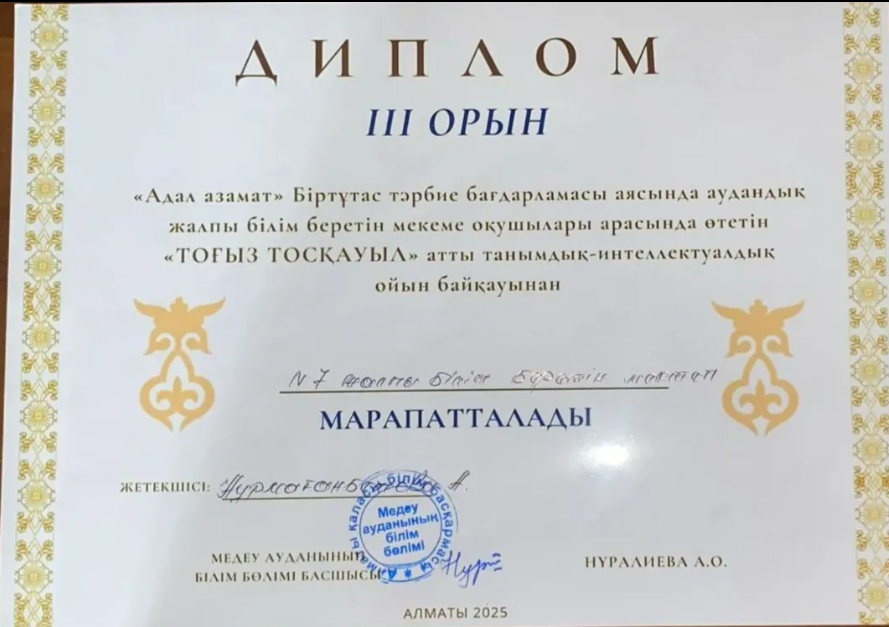 КГУ «Общеобразовательная школа №7» Управления образования города Алматы