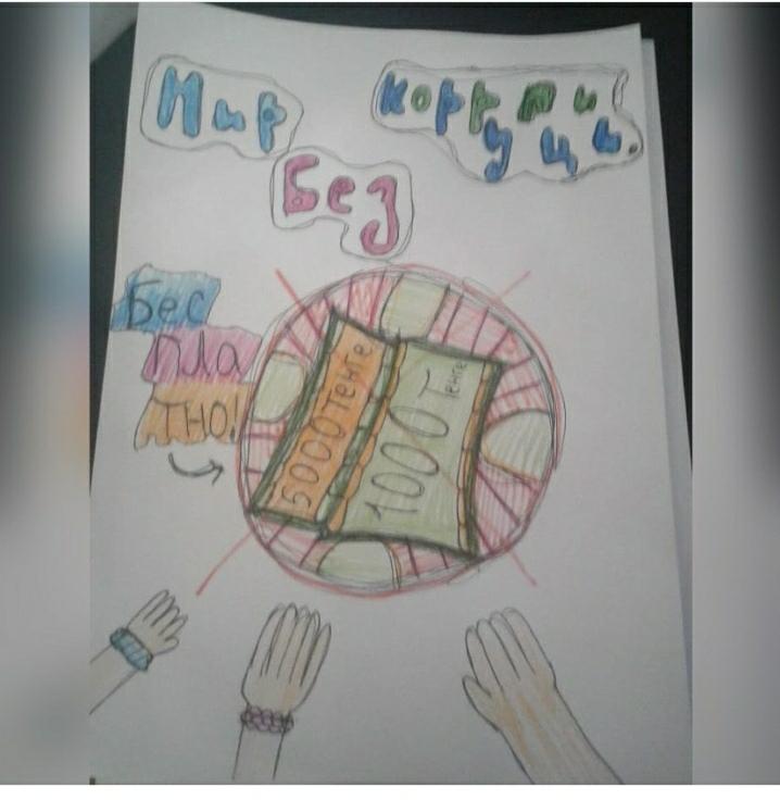 сыбайлас жемқорлыққа қарсы көзқарастарын қалыптастыру мақсатында мектепте тұрақты түрде қашықтықтан түрлі форматта сыбайлас жемқорлық туралы ұғымды түсіндіру және сыбайлас жемқорлыққа қарсы тәртіп орнату, сыбайлас жемқорлық құбылыстарына қарсы әрекет ете білуге тәрбиелеу болып табылады.Жастар сыбайлас жемқорлыққа қарсы!