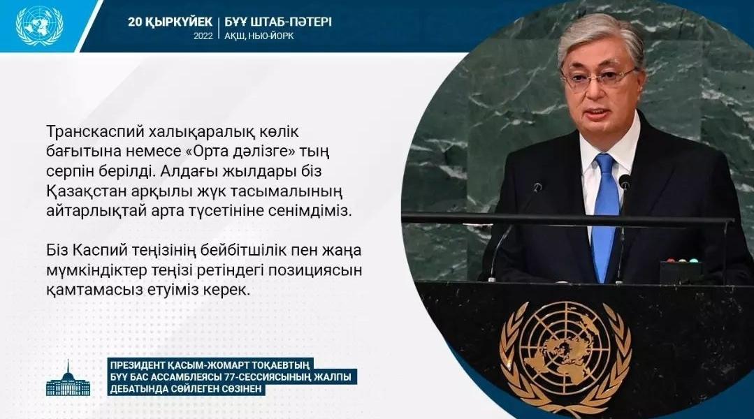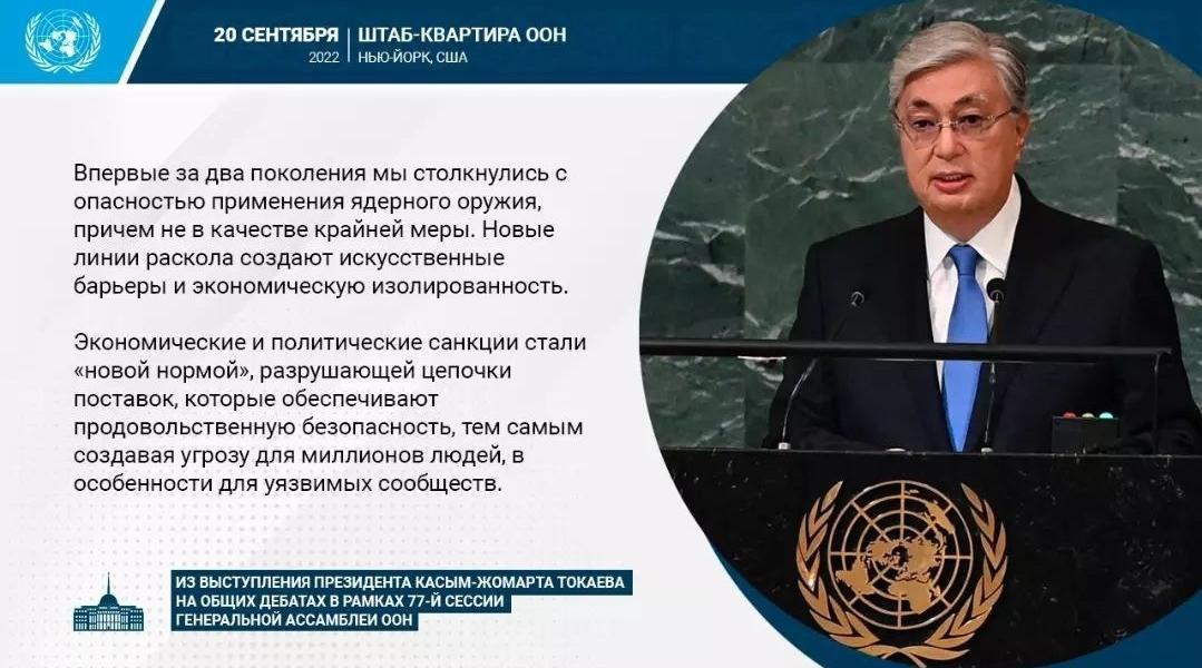 21 қыркүйек 2022 0 1 2 3 4 5 Қасым-Жомарт Тоқаевтың сөзі Мемлекет басшысы Қасым-Жоиарт Тоқаевтың БҰҰ Бас Ассамблеясының 76-шы сессиясының жалпы пікірталастарында сөйлеген сөзі. Осы беттің QR-коды:QR-код этой страницы: