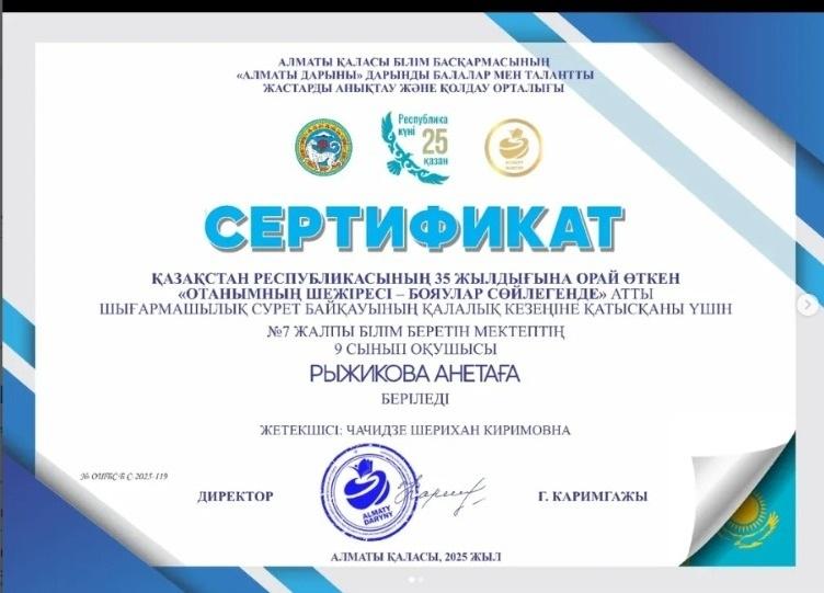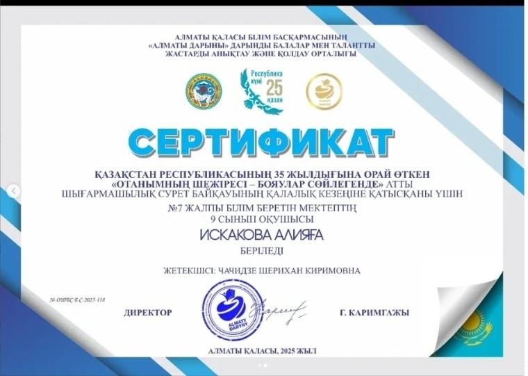 КГУ «Общеобразовательная школа №7» Управления образования города Алматы