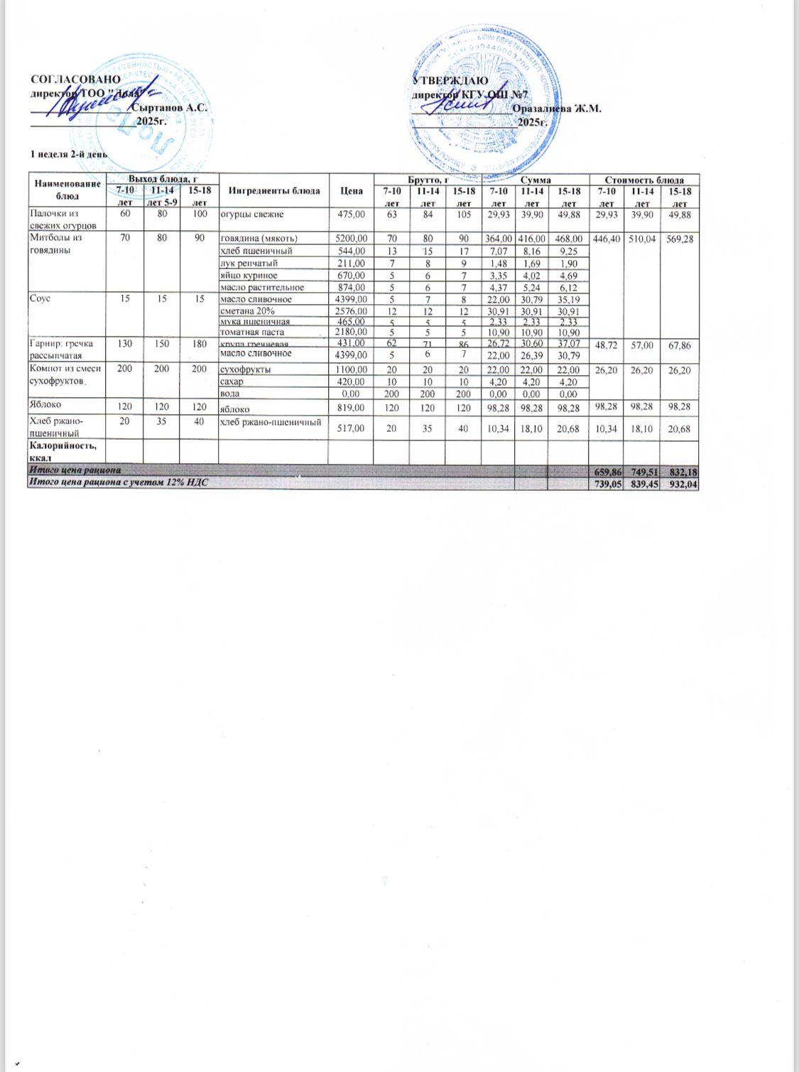 02 қыркүйек 2025 0 1 2 3 4 5 Ас мәзірі 1 апта - 2 ші күн Бюджет қаражаты есебінен орта білім беру ұйымдарында білім алушыларды тегін тамақтандыруды ұйымдастыру үшін төрт апталық ас мәзірі Осы беттің QR-коды:QR-код этой страницы: