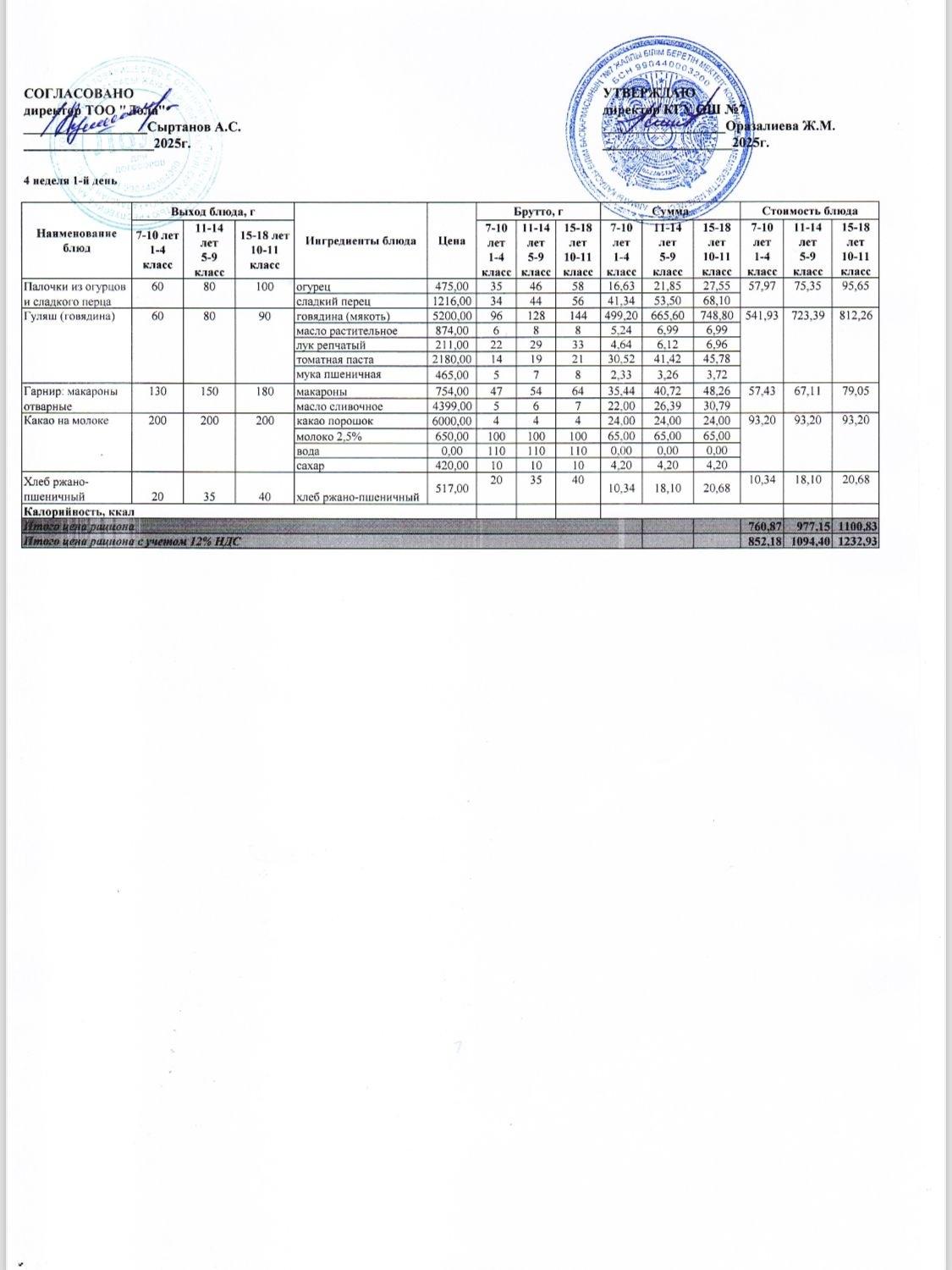 22 қыркүйек 2025 0 1 2 3 4 5 Ас мәзірі 4 апта - 1 ші күн Бюджет қаражаты есебінен орта білім беру ұйымдарында білім алушыларды тегін тамақтандыруды ұйымдастыру үшін төрт апталық ас мәзірі Осы беттің QR-коды:QR-код этой страницы: