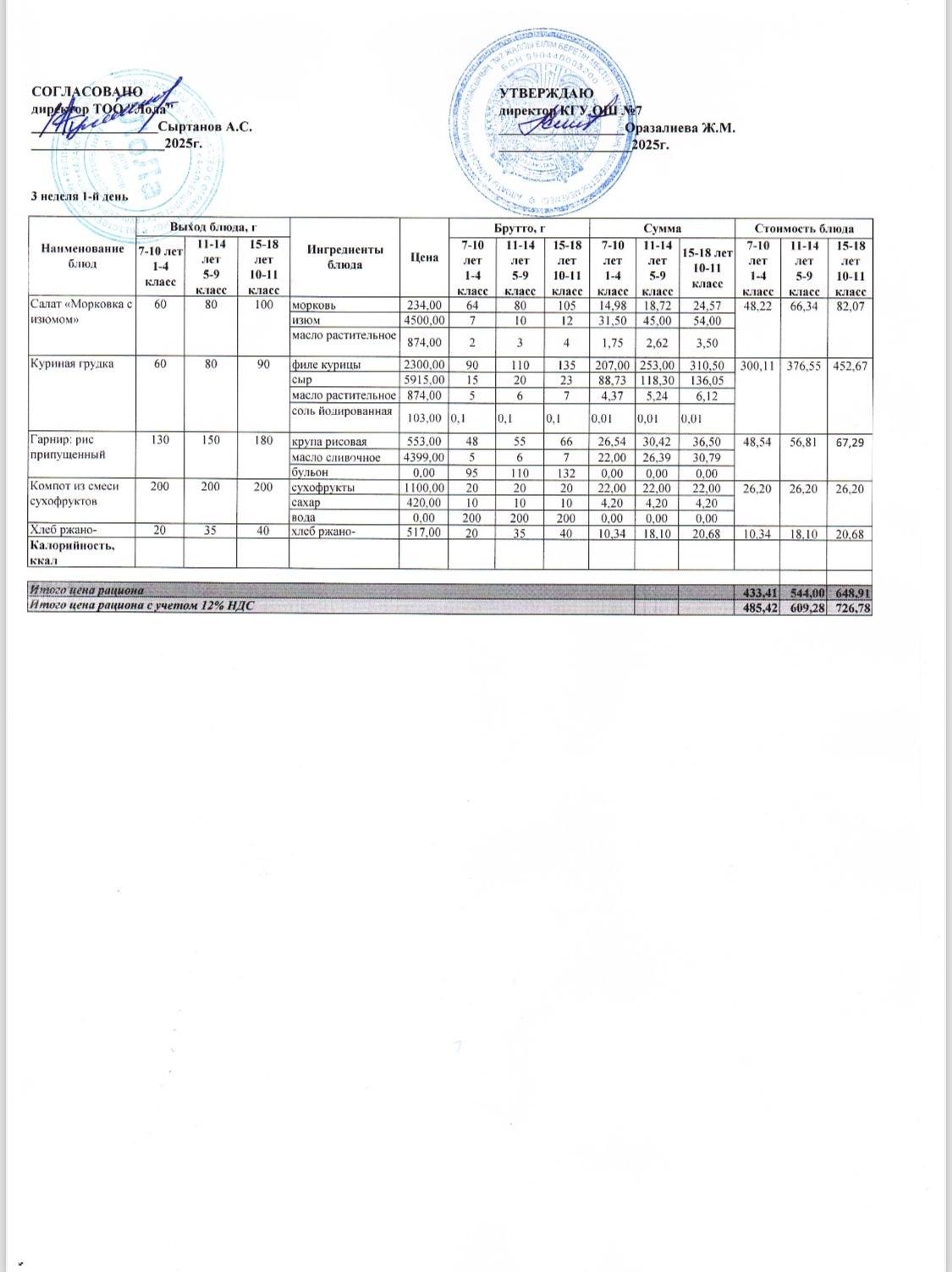 13 қазан 2025 0 1 2 3 4 5 Ас мәзірі 3 апта - 1 ші күн Бюджет қаражаты есебінен орта білім беру ұйымдарында білім алушыларды тегін тамақтандыруды ұйымдастыру үшін төрт апталық ас мәзірі Осы беттің QR-коды:QR-код этой страницы: