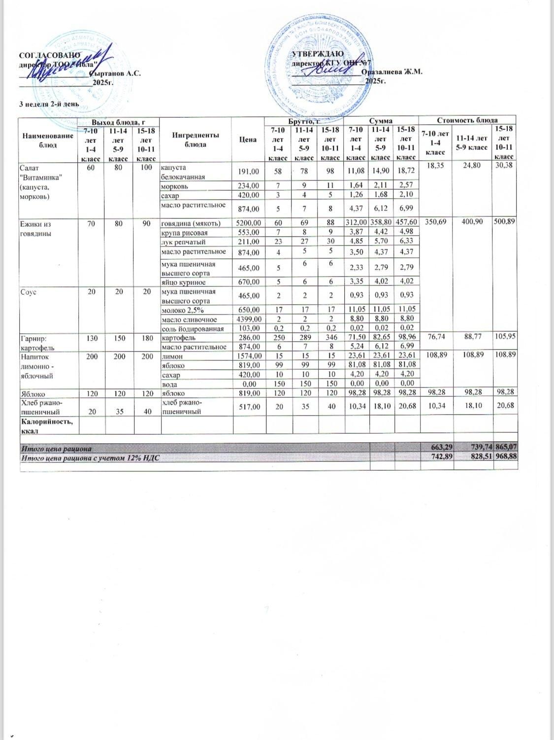 14 қазан 2025 0 1 2 3 4 5 Ас мәзірі 3 апта - 2 ші күн Бюджет қаражаты есебінен орта білім беру ұйымдарында білім алушыларды тегін тамақтандыруды ұйымдастыру үшін төрт апталық ас мәзірі Осы беттің QR-коды:QR-код этой страницы: