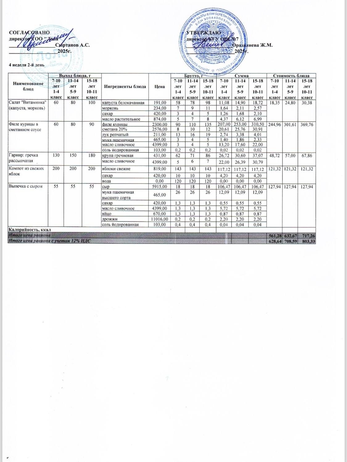 21 қазан 2025 0 1 2 3 4 5 Ас мәзірі 4 апта - 2 ші күн Бюджет қаражаты есебінен орта білім беру ұйымдарында білім алушыларды тегін тамақтандыруды ұйымдастыру үшін төрт апталық ас мәзірі Осы беттің QR-коды:QR-код этой страницы: