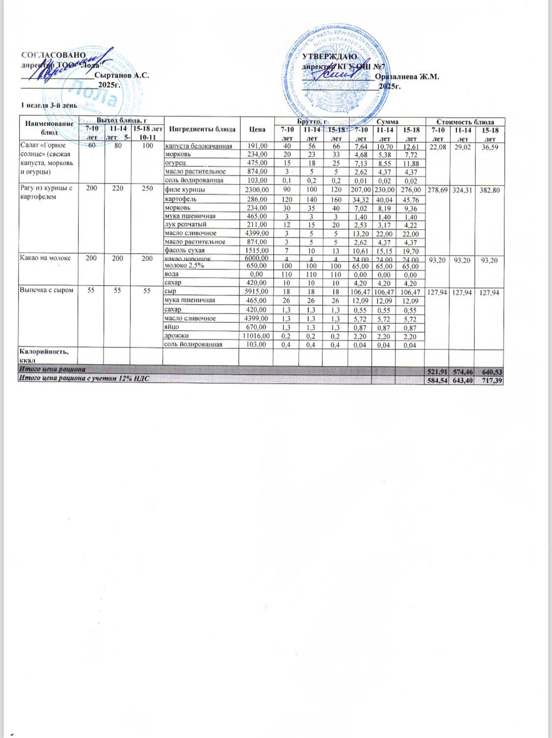 05 қараша 2025 0 1 2 3 4 5 Ас мәзірі 1 апта - 3 ші күн Бюджет қаражаты есебінен орта білім беру ұйымдарында білім алушыларды тегін тамақтандыруды ұйымдастыру үшін төрт апталық ас мәзірі Осы беттің QR-коды:QR-код этой страницы: