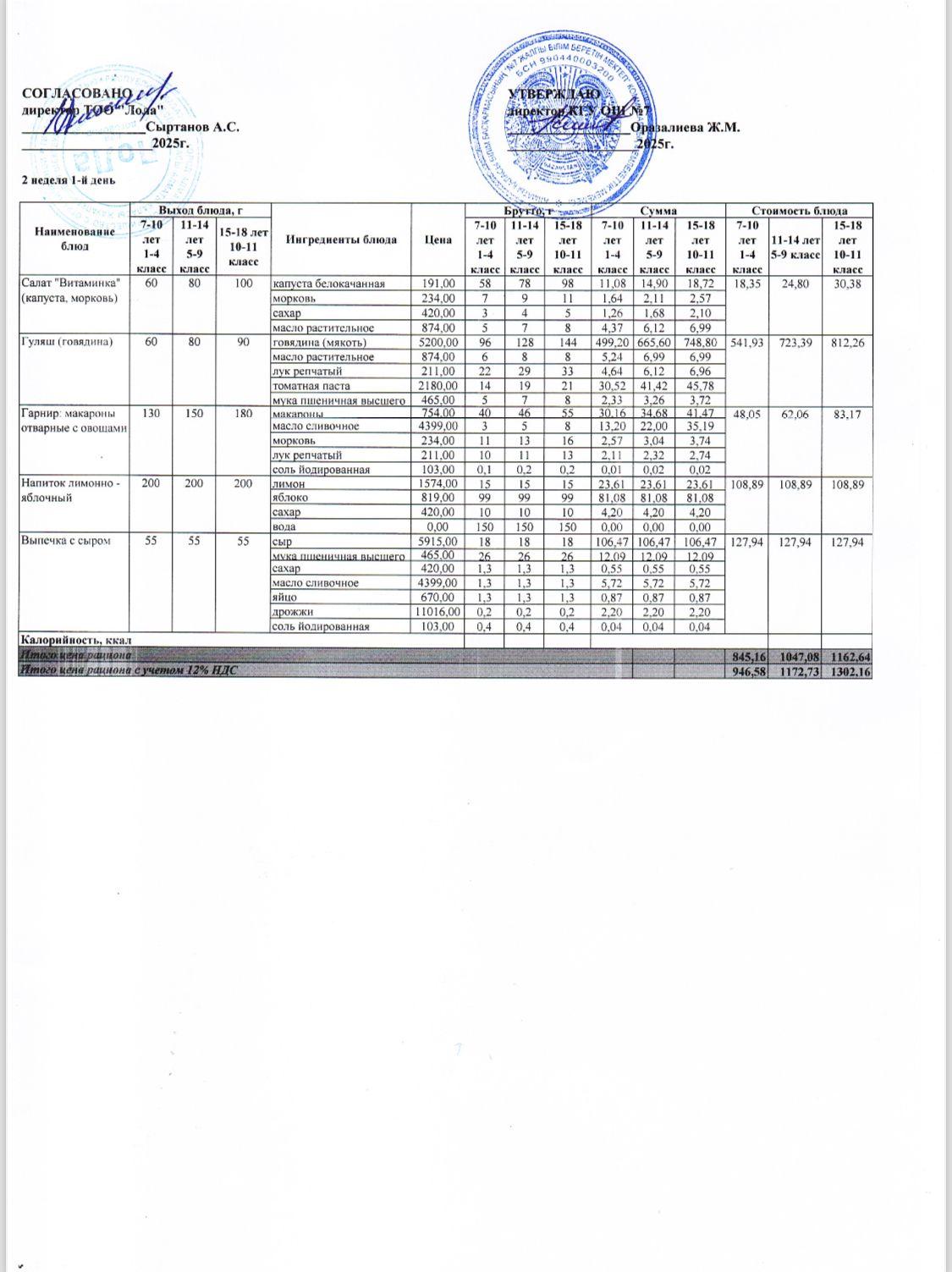 10 қараша 2025 0 1 2 3 4 5 Ас мәзірі 2 апта - 1 ші күн Бюджет қаражаты есебінен орта білім беру ұйымдарында білім алушыларды тегін тамақтандыруды ұйымдастыру үшін төрт апталық ас мәзірі Осы беттің QR-коды:QR-код этой страницы: