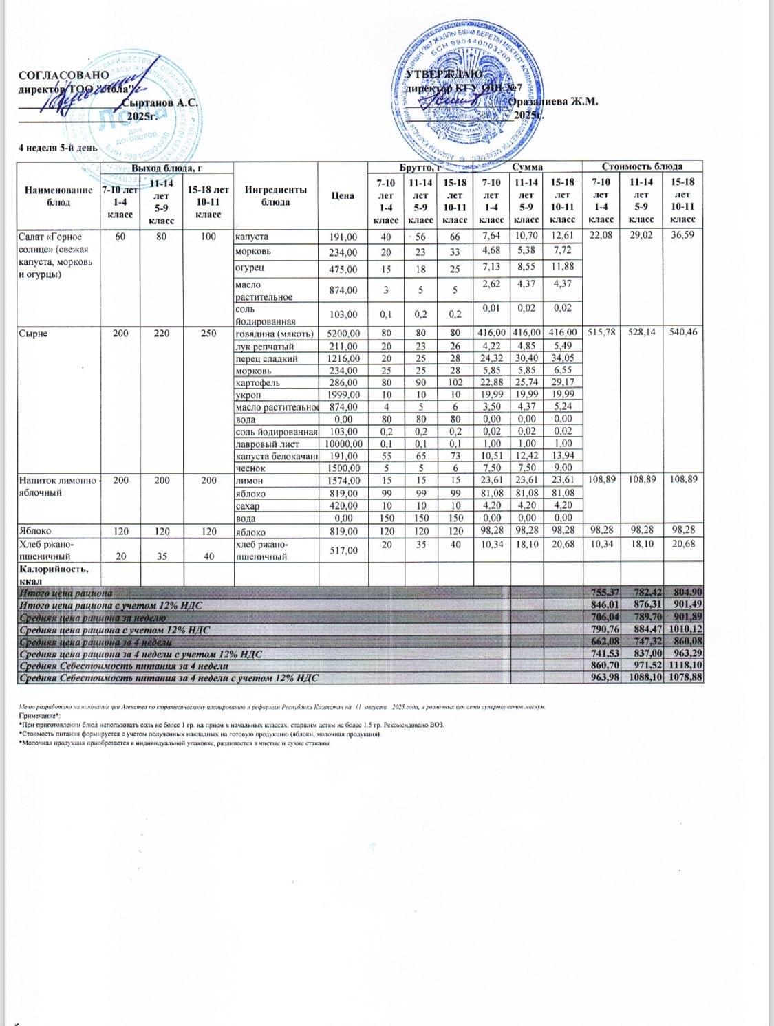 28 қараша 2025 0 1 2 3 4 5 Ас мәзірі 4 апта - 5 ші күн Бюджет қаражаты есебінен орта білім беру ұйымдарында білім алушыларды тегін тамақтандыруды ұйымдастыру үшін төрт апталық ас мәзірі Осы беттің QR-коды:QR-код этой страницы: