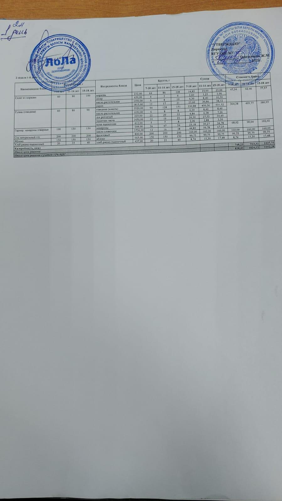 Четырехнедельное меню блюд для организации бесплатного питания обучающихся в организациях среднего образования за