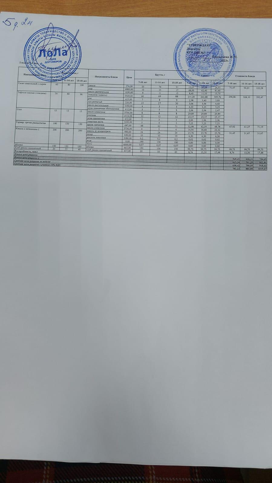 Бюджет қаражаты есебінен орта білім беру ұйымдарында білім алушыларды тегін тамақтандыруды ұйымдастыру үшін төрт апталық ас мәзірі/ Четырехнедельное меню блюд для организации бесплатного питания обучающихся в организациях среднего образования за счет бюджетных средств
