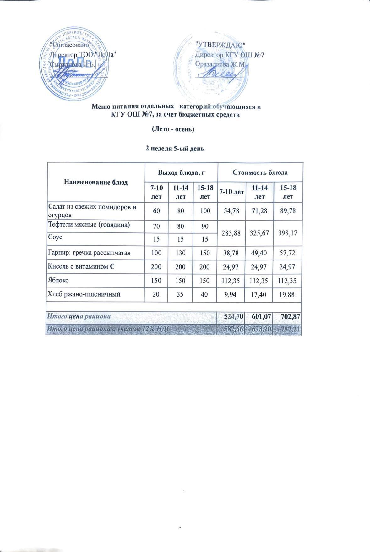 Бюджет қаражаты есебінен орта білім беру ұйымдарында білім алушыларды тегін тамақтандыруды ұйымдастыру үшін төрт апталық ас мәзірі/Четырехнедельное меню блюд для организации бесплатного питания обучающихся в организациях среднего образования за счет бюджетных средств