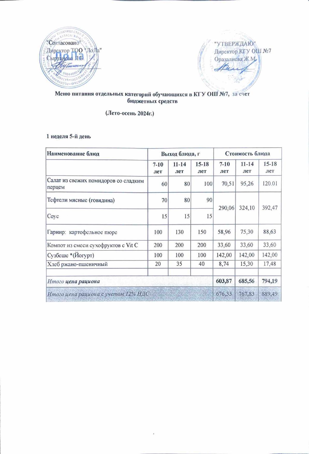 04 қазан 2024 0 1 2 3 4 5 Ас мәзірі 1 апта 5 күн Бюджет қаражаты есебінен орта білім беру ұйымдарында білім алушыларды тегін тамақтандыруды ұйымдастыру үшін төрт апталық ас мәзірі Осы беттің QR-коды:QR-код этой страницы: