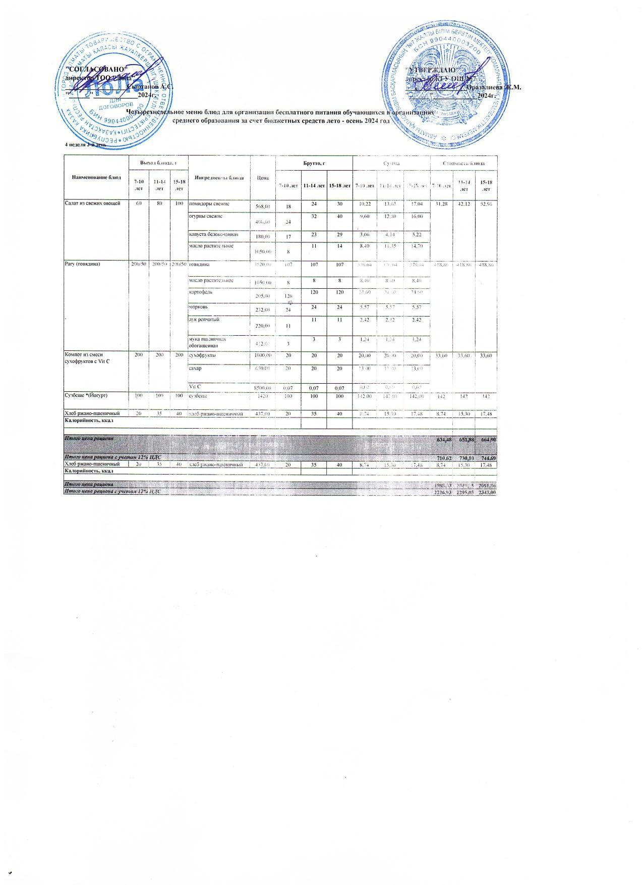 23 қазан 2024 0 1 2 3 4 5 Ас мәзірі 4 апта 3 күн Бюджет қаражаты есебінен орта білім беру ұйымдарында білім алушыларды тегін тамақтандыруды ұйымдастыру үшін төрт апталық ас мәзірі Осы беттің QR-коды:QR-код этой страницы: