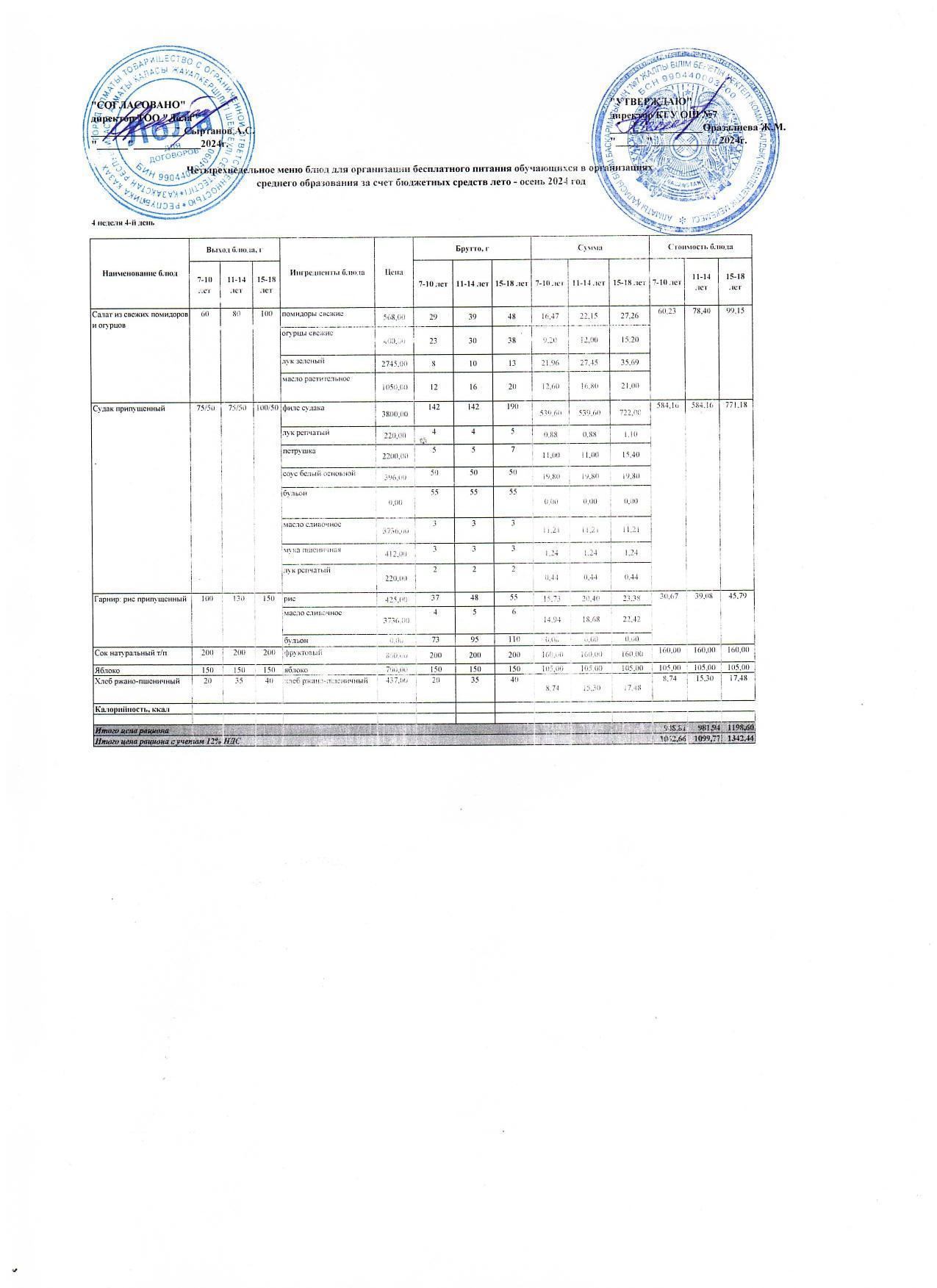 24 қазан 2024 0 1 2 3 4 5 Ас мәзірі4 апта 4 күн Бюджет қаражаты есебінен орта білім беру ұйымдарында білім алушыларды тегін тамақтандыруды ұйымдастыру үшін төрт апталық ас мәзірі Осы беттің QR-коды:QR-код этой страницы: