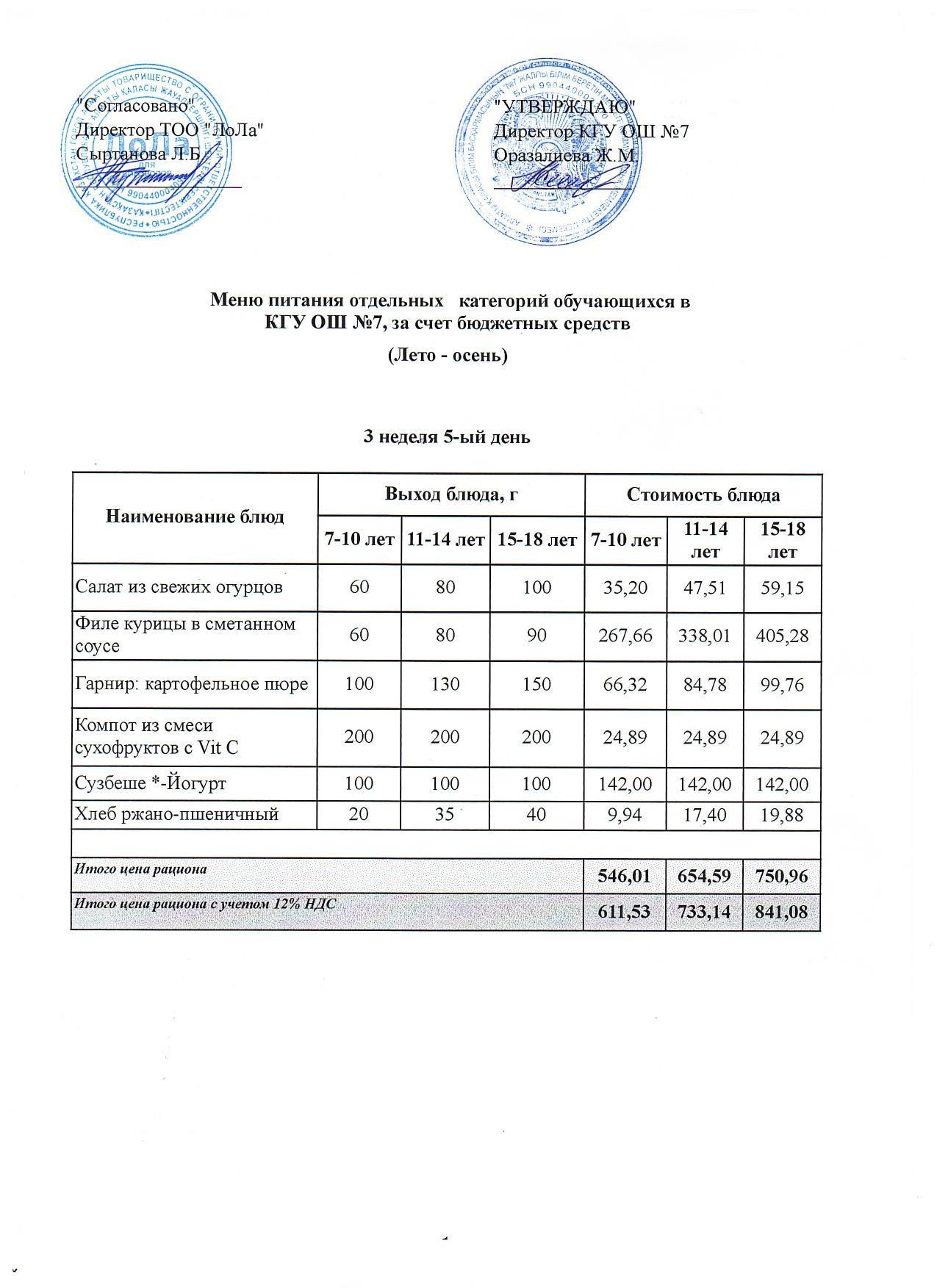 22 қараша 2024 0 1 2 3 4 5 Ас мәзірі 3 апта 5 күн Бюджет қаражаты есебінен орта білім беру ұйымдарында білім алушыларды тегін тамақтандыруды ұйымдастыру үшін төрт апталық ас мәзірі Осы беттің QR-коды:QR-код этой страницы: