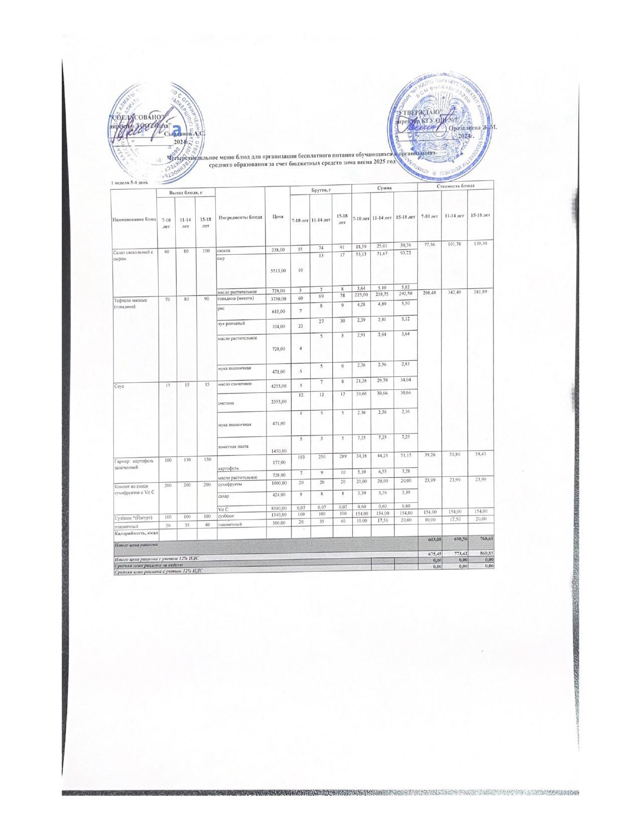 10 қаңтар 2025 0 1 2 3 4 5 Ас мәзірі 1 апта 5 күн Бюджет қаражаты есебінен орта білім беру ұйымдарында білім алушыларды тегін тамақтандыруды ұйымдастыру үшін төрт апталық ас мәзірі/ Осы беттің QR-коды:QR-код этой страницы: