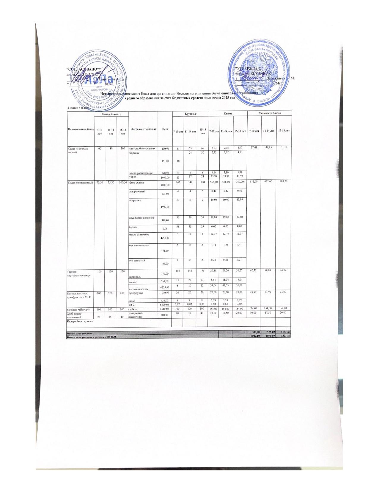 16 қаңтар 2025 0 1 2 3 4 5 Ас мәзірі 2 апта 4 күн Бюджет қаражаты есебінен орта білім беру ұйымдарында білім алушыларды тегін тамақтандыруды ұйымдастыру үшін төрт апталық ас мәзірі/ Осы беттің QR-коды:QR-код этой страницы: